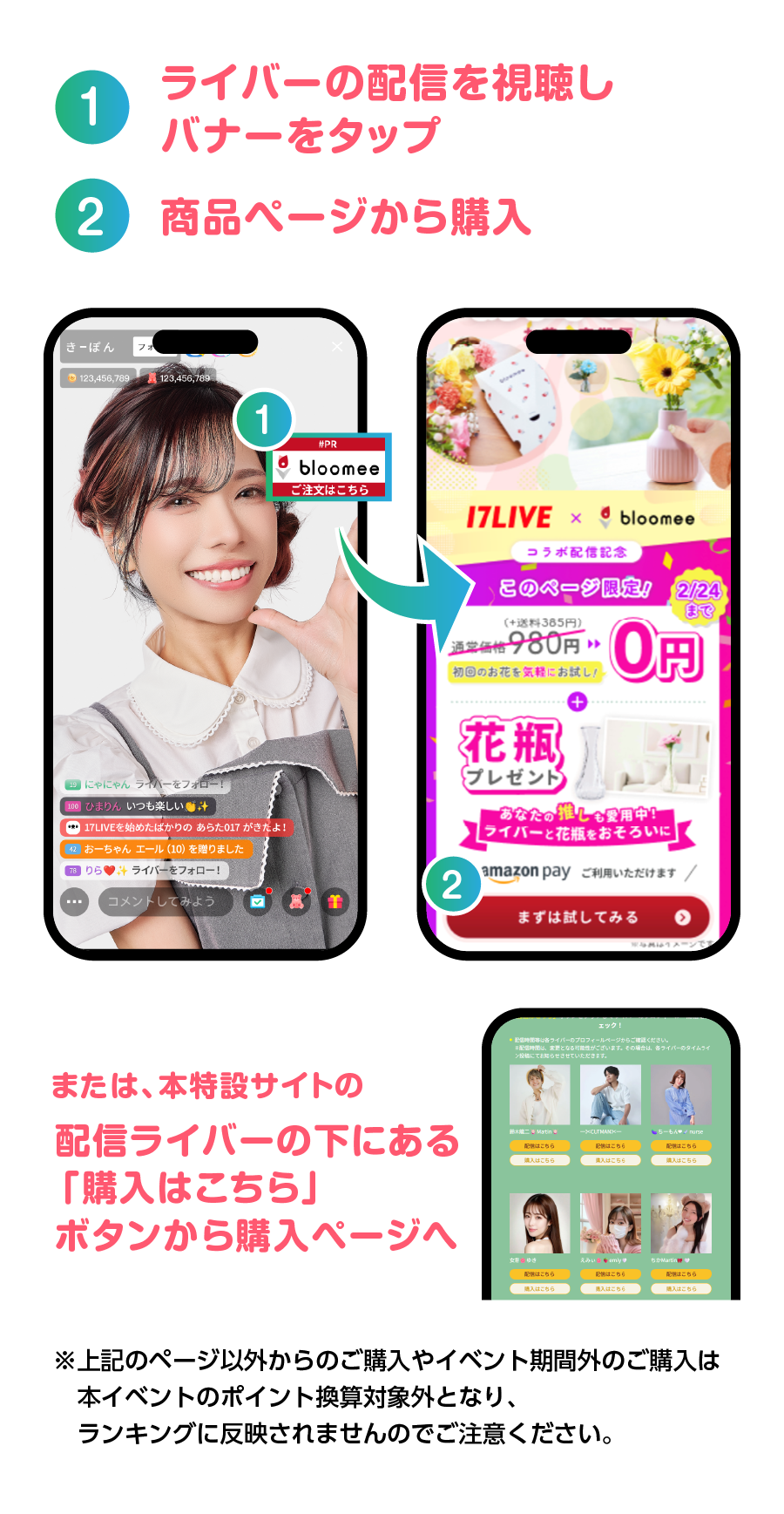 - ※実施期間外の購入および各配信者ごとのURL外での購入はカウントされません。