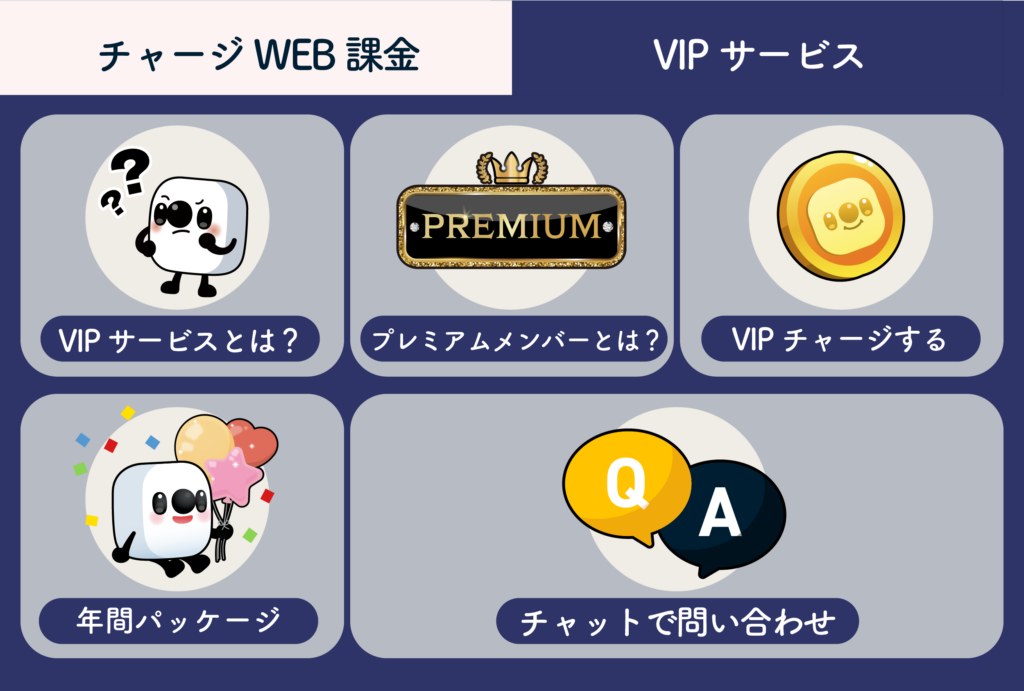 プロフィールURLの送信が完了すると、LINEの右側のタブ「VIPサービス」が表示されます。希望するサービスをご選択ください。