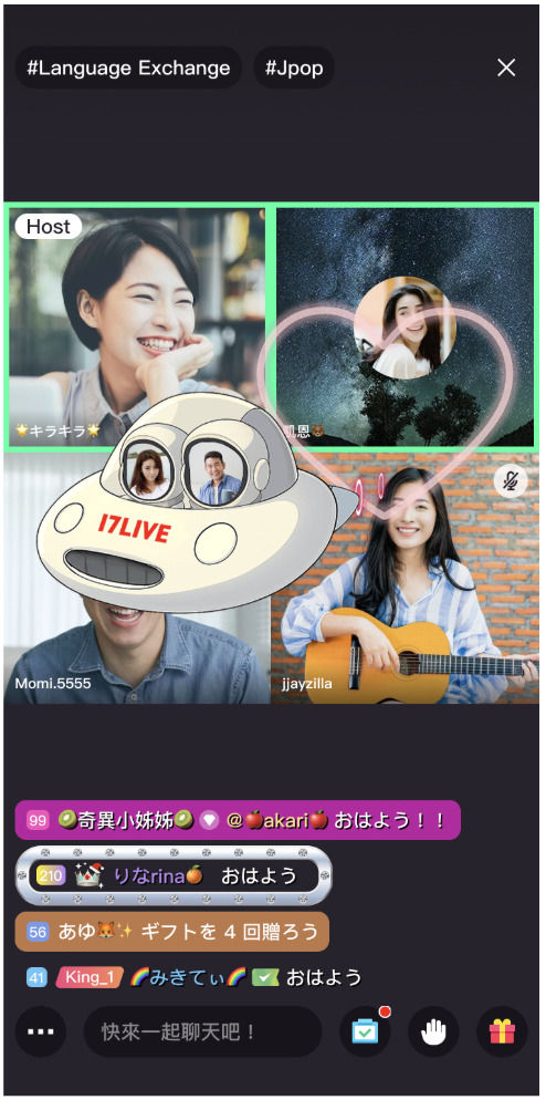 ※ツーショット演出ギフトは通常配信、Group call(グループコール)、VS、Web版 17.liveでのギフトアニメーション表示に対応しています