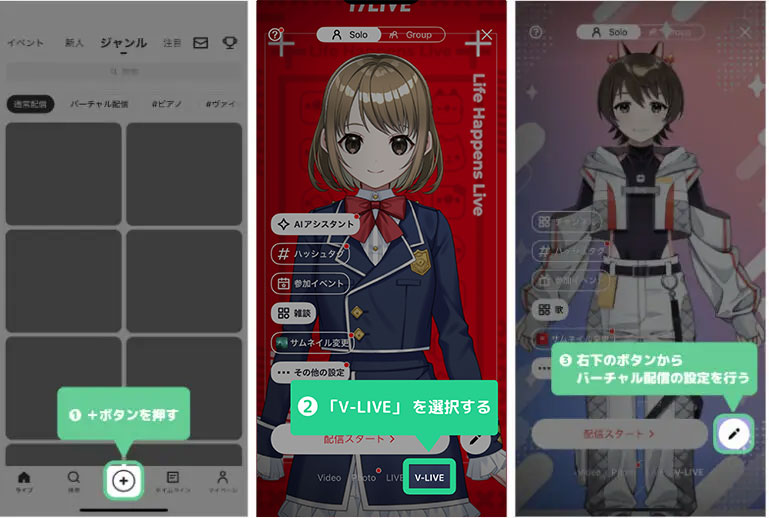 ③ 右下のボタンからバーチャル配信の設定を行う