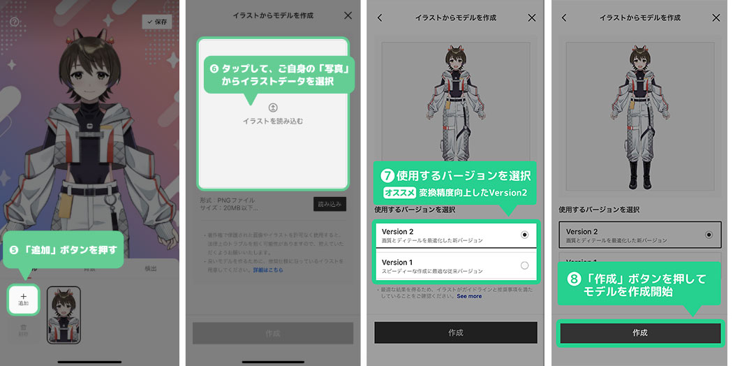⑦生成するバージョンを選択 ※Version.2 が最新です
