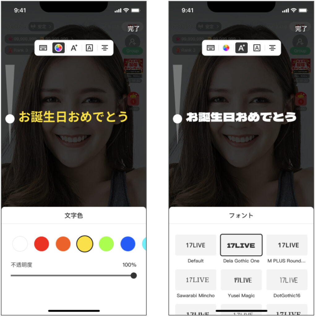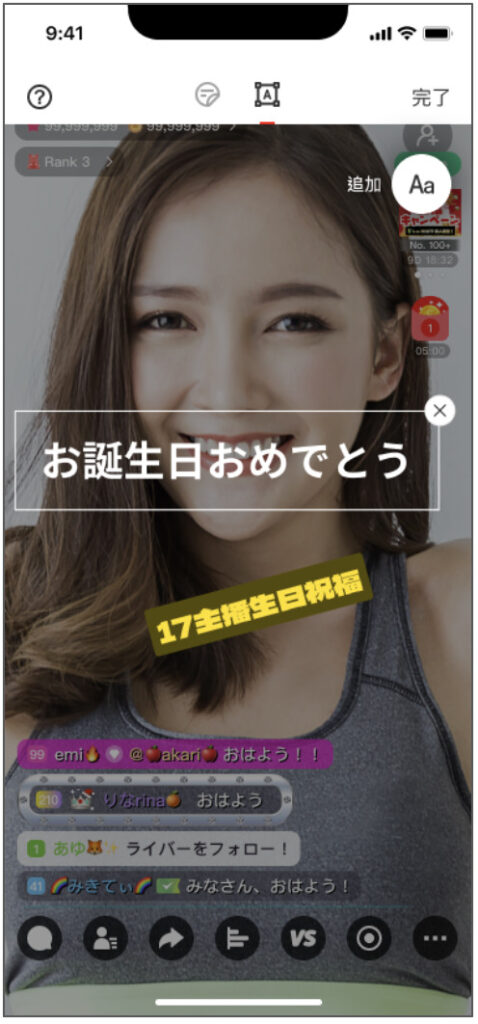 配信画面に好きな文字を表示させてデコレーションできる「テキスト機能」が追加されました!