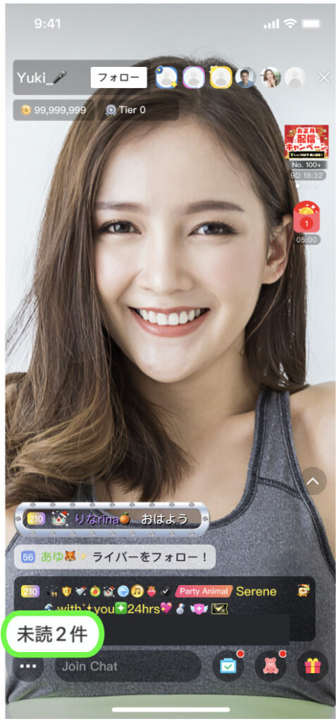 ・配信画面の見方(ライバー)