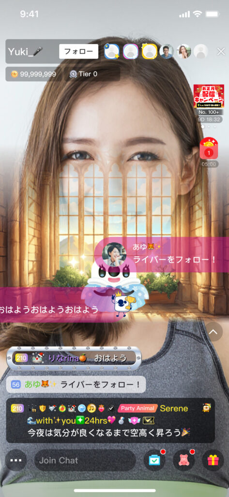 コメントエリアを展開(拡大)している際、ギフトアニメーションなどの演出の見え方はご利用の環境によって異なります。