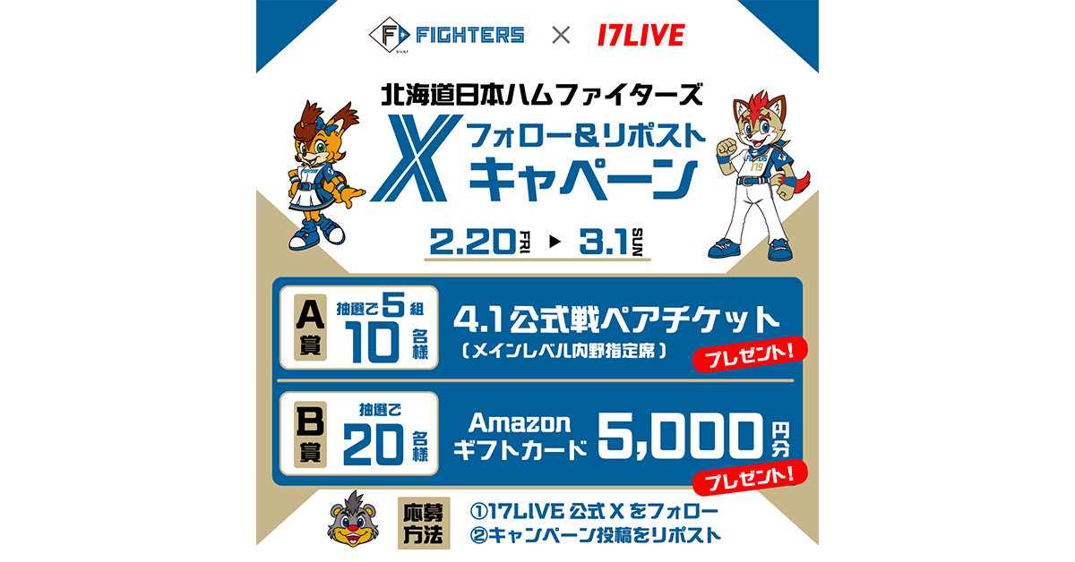 公式戦ペア観戦チケットが当たる⚾️「ファイターズ × 17LIVE」Xキャンペーン