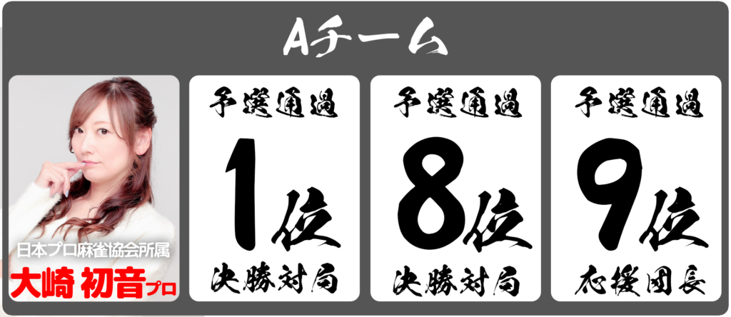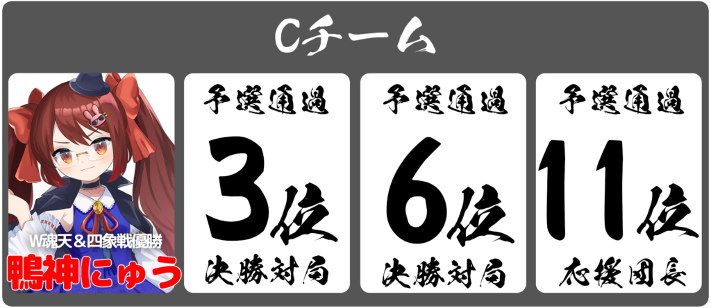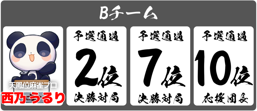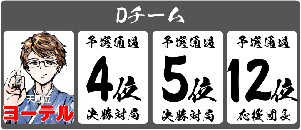 ・決勝チーム応援団長として予選9位〜12位通過者4名(決勝の対局なし)