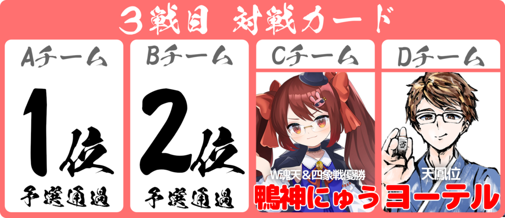 ※トラブル等の理由により、対局者が対局を行えない場合は、各チームの応援団長が代わりに対局を行う可能性があります。