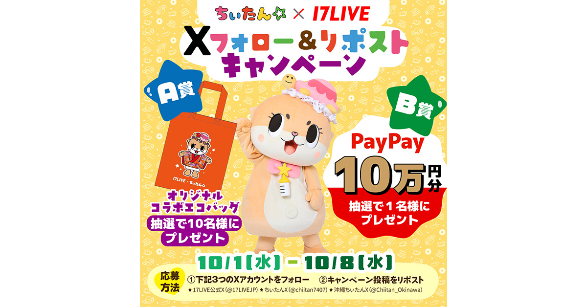17LIVEとちぃたんのコラボを記念して「Xフォロー&リポストキャンペーン」開催🎁🌺