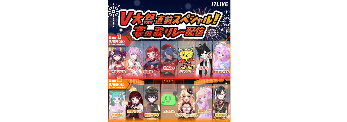 17LIVEの「Vライバージャンル」設立7周年をお祝いするオフラインイベント、V大祭 ~イチナナVライバー7th Anniversary~ 9月26日(金)18:00〜神田明神ホールにて開催!