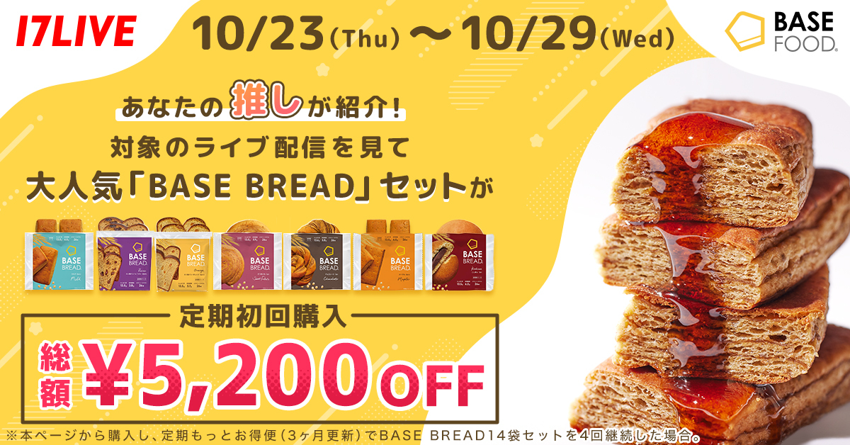 1食で1日に必要な栄養素の3分の1が摂れる「BASE BREAD」が話題!完全栄養食ブランド「BASE FOOD」のライブコマースイベントを「17LIVE」で実施