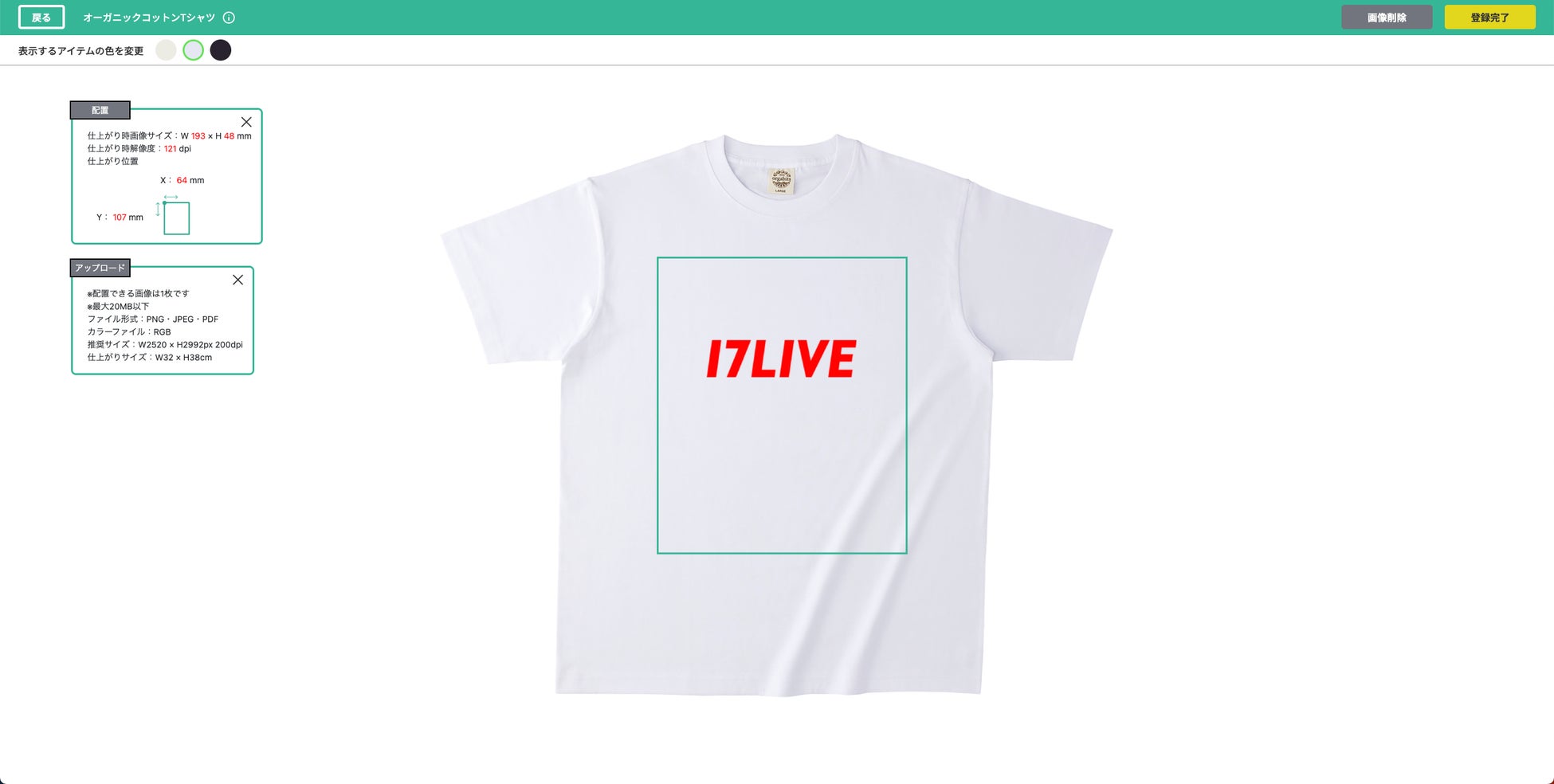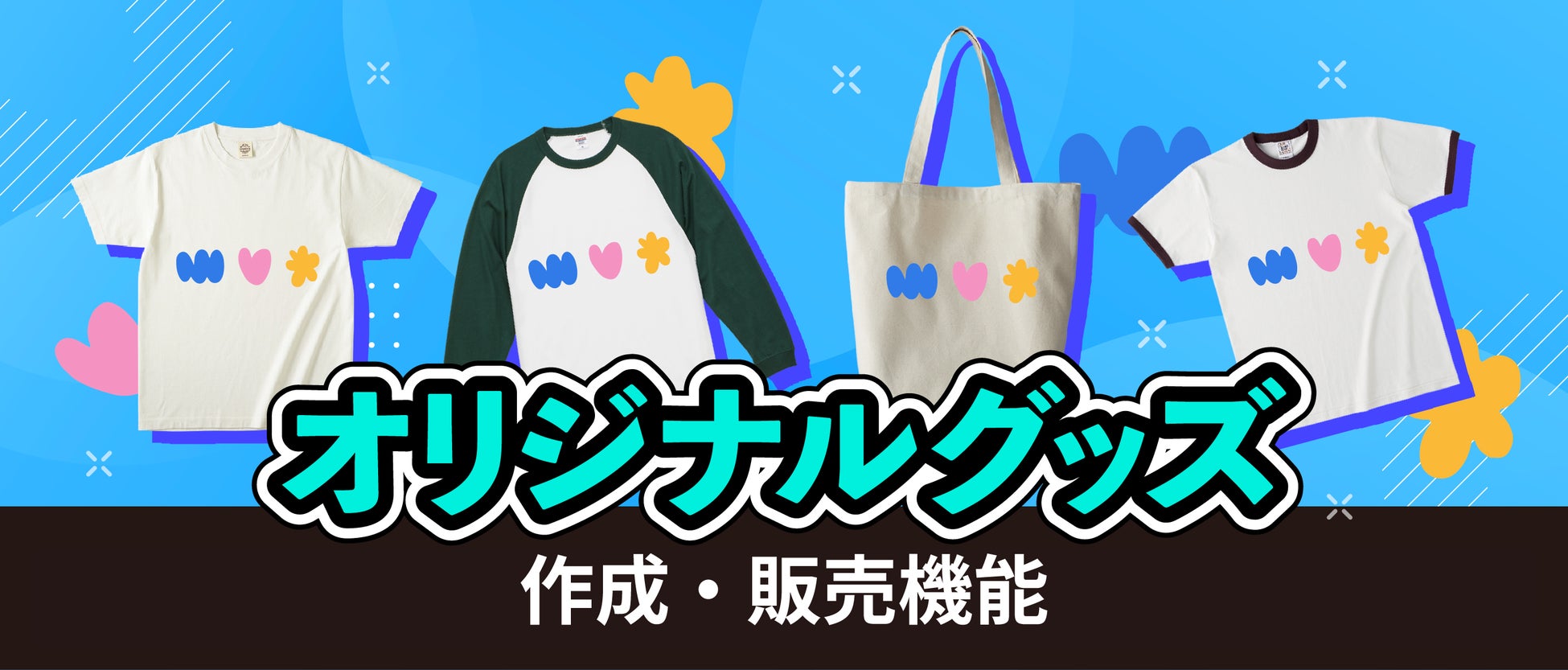 今回新たに導入した機能では、Tシャツやトートバッグなど25種類以上(※1)のグッズからご希望のアイテムを選択後、シミュレーターにPNGやJPEG、PDF形式でデザインのアップロードを行うだけで、簡単にオリジナルグッズを作成することができます。本機能で作成したグッズは全て受注生産になり、ライバー自身で在庫管理を行う必要がなく、1点から商品販売を行うことが可能です。また、作成したグッズは、工場から購入した方の手元に直接発送されるため、ご自身での発送作業も不要になります。なお、本機能の利用にあたり、月額料金や販売手数料はかからず、全ての機能を無料でご利用いただけます。