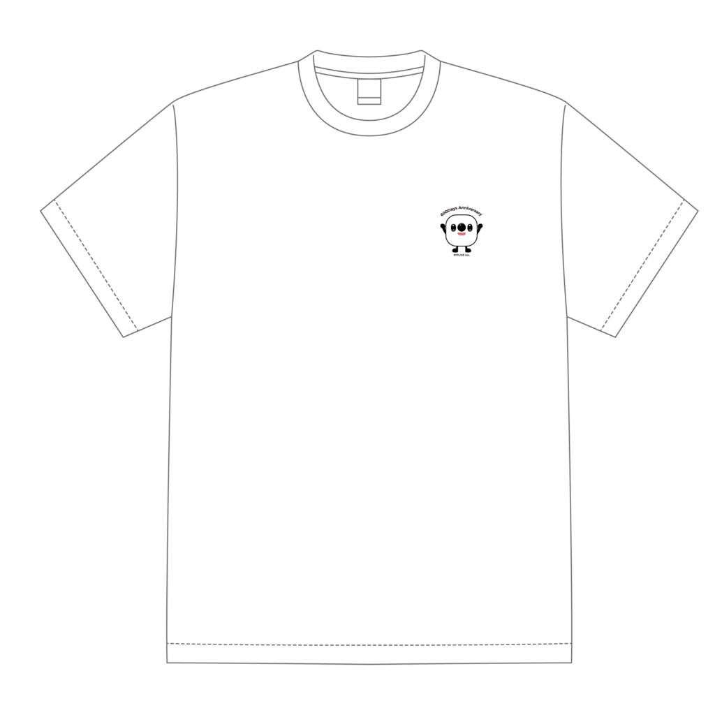 左胸あたりにワンポイントのベイビーと 「600Days Anniversary」(600日)、「1200Days Anniversary」(1200日)の文字がプリントされる予定です。1800日は色・デザインなど要相談となります。