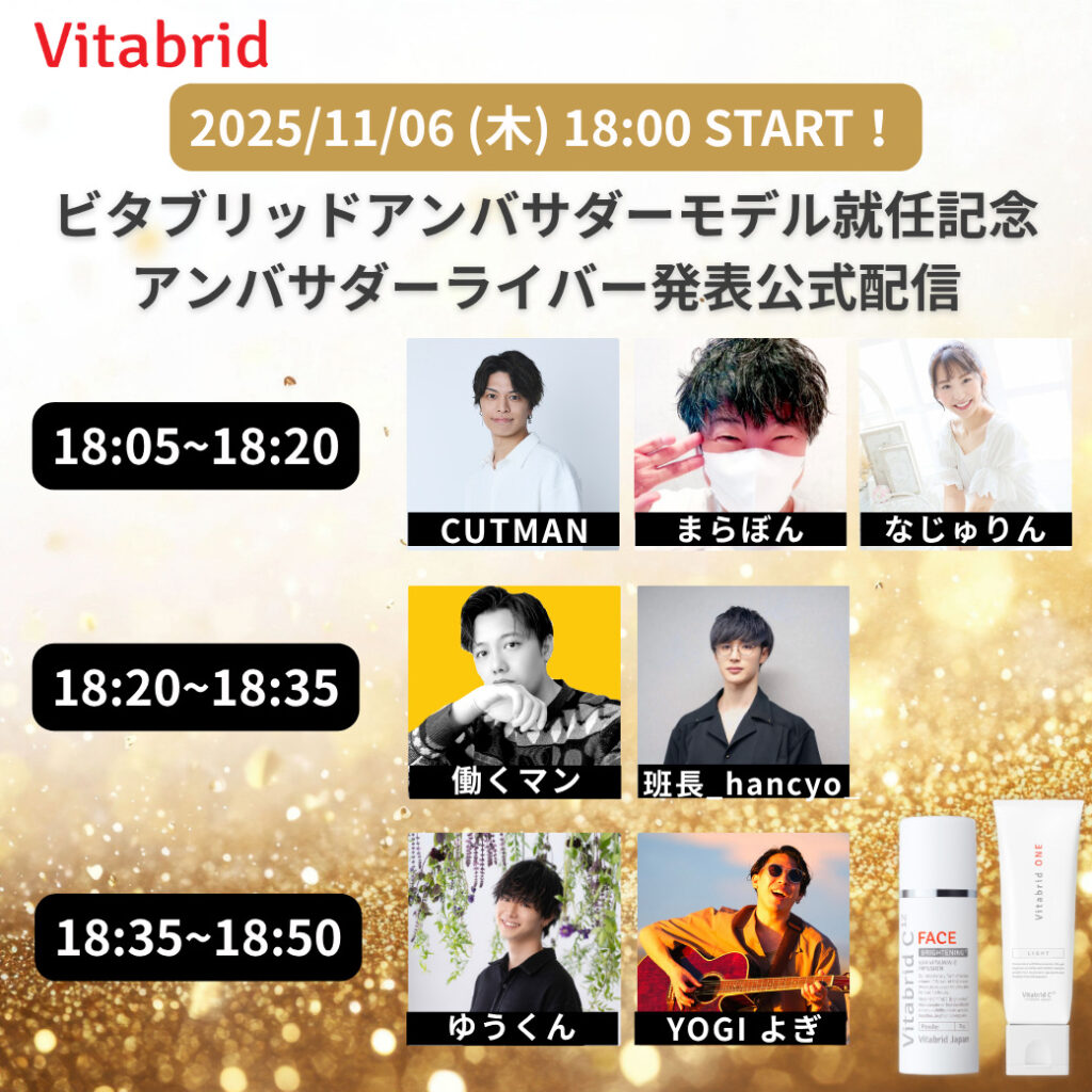 ビタブリッドジャパン社員様をお呼びして、「Vitabridアンバサダーモデル」に選ばれた7名のライバーをご紹介する特別番組を実施決定!